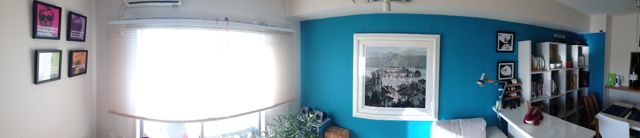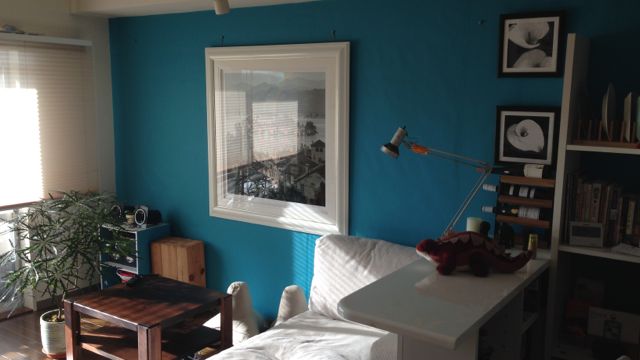 前回古くて狭い部屋だったので、今回は少し奮発して 66平米、内装も2人で頑張って壁紙張ってみた。