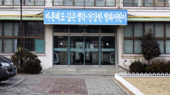 바른태도 깊은생각 건강한 청파어린이 自動翻訳を意訳すると「礼儀正しく、よく学ぶ、元気な青坡の子供」ってなところか |
