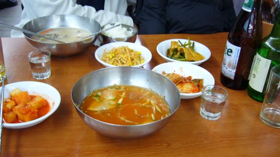 | ムルレンミョンとテグタン美味しかったぞぃ。ビール2本とチャミスル1本。 |
