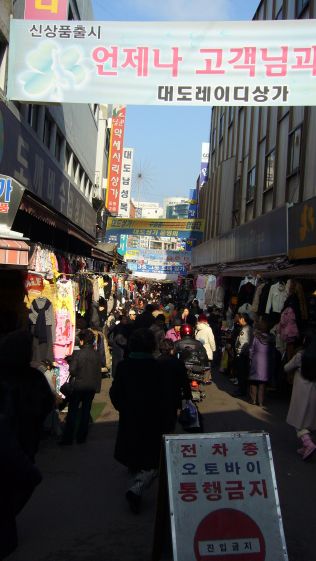 | 天気もいいし、暖かいし、人でいっぱい。それにしても、客引きが強引だなぁ。 ぼーっとしていると、腕を捕まれて店の中に拉致されるよ。「幻の時計の完全なコピー有ります」が合い言葉だ。 後日、韓国籍の同僚に「そんなに偽物買う人いるの?」と聞くと「買うのはほとんど日本人ですよぉ」との答え。 どおりでみんな日本語が上手いこと。「のりのり天国」のお兄さんなんか、試食でもらった海苔より、あんたの日本語の方が上手いよ。 |