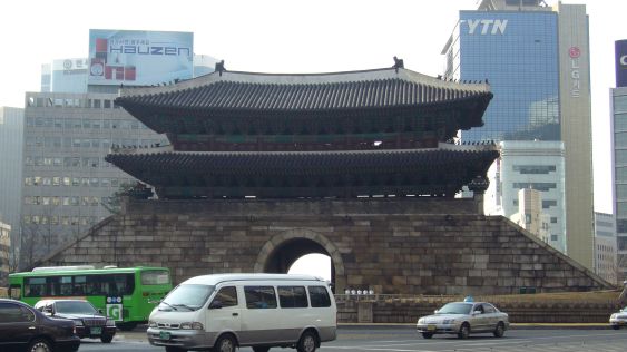 カンナムのホテルのフロントではち合わせた同僚と、タクシーで市庁舎前のホテルまで来た。 さて、今回もここから観光スタートだ。ホテルのある市庁舎側から観た南大門。 |