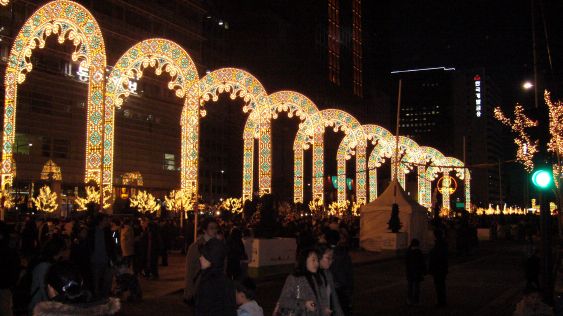 ここソウルの市庁舎前は、チョンゲチョンが始まる場所。 そして、ソウルもルミナリオ。人がいっぱいだった。 |