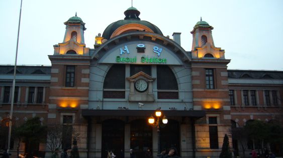 | ソウルの旧駅舎。ネオン付けるのかやめるのか、はっきりしてくれ。 |