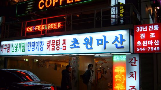 のガソリンスタンドの南西側。この辺は、アグチム、カンジャンゲジャン屋が30〜40軒ほど集まっている地域。この店の他は、有名な「プロカンジャンゲジャン」にも行ったことがあるけど、写真のお店の方が美味しい。 2/17 |
