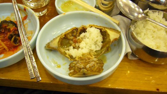 前回食べなかったカンジャンゲジャン。今回は夜に行った。何時もソウルに着いた日のお昼に行くので、これを食べながらお酒が飲めないのが、残念だったけど、今回は思う存分飲んで食べた。 そしてアンコウとモヤシの唐辛子蒸し炒め?料理のアグチムもとても美味しかった。 |