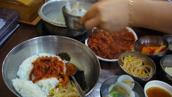 出張中必ず一度はお昼に行くビビンパ屋さん。ここのパジョンがとっても美味しい。久しぶりに石焼きビビンパを頼んだ。ドングリのぷるぷるしたゼリーみたいなのも美味しい。 2/16 |