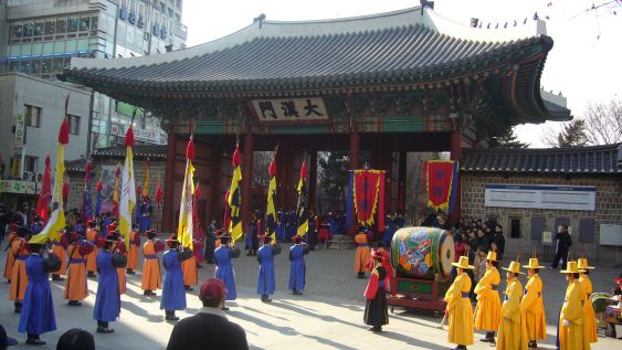 前回と同じく、夜の便で帰る同僚 K 氏とうろうろ。シチョンにある徳寿宮の門番交代の儀式。