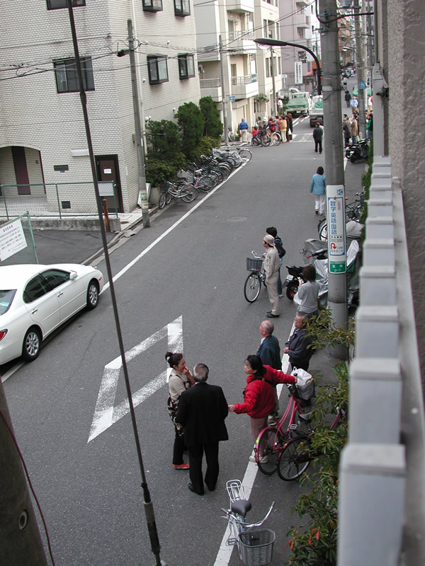 野次馬さんたち。何人かの人がすかさず写メールしています。